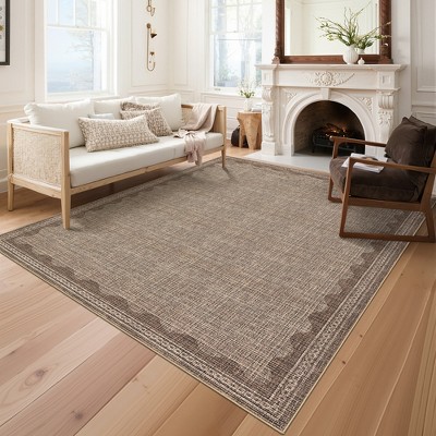 9x12FT Modern Washable Area Rug, Checkered Leopard Print Floor Cover with Non Slip Backing, Low Pile Stain Resistant Indoor Carpet, Light Brown