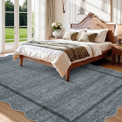 9x12FT Modern Washable Area Rug for Living Room, Bordered Foldable Area Rug with Non Slip Backing, Stain Resistant Low Pile Carpet for Home, Grey