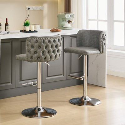 A&A Furniture,Swivel Barstools Adjusatble Seat Height With Chrome Base, Modern PU Upholstered Bar Stools with the whole Back Tufted