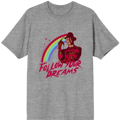A Nightmare On Elm Street Follow Your Dreams Men's Heather Gray Crew Neck Short Sleeve Tee-Large