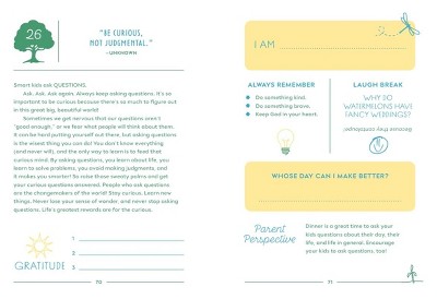 The repeated daily prompt features engaging activities and daily challenges that help kids develop the emotional tools to navigate life's challenges with confidence. The journal also includes tips for parents and caregivers to spark meaningful conversations about the things that matter most, like building community, finding ways to help others, and continuing on after setbacks.