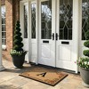 More than just a decorative enhancement, this rubber & coir doormat features a heavy rubber backing that keeps it securely in place while you scrub dirt and debris from shoes and boots. The tufted coco-fiber effectively cleans soles, while the sturdy rubber backing helps prevent slips and keeps the mat anchored. The attractive design creates a welcoming entrance for guests, and the durable coir material is built to withstand heavy foot traffic. This doormat is recommended for outdoor use in covered areas. For longer life, vacuum or shake the mat regularly.