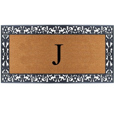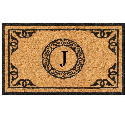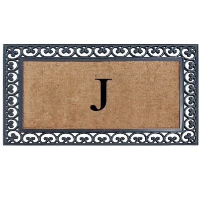 A1HC Natural Rubber Coir Outdoor Doormat 24x48 Monogrammed Anti-Shed Treated Durable Front Door Mat Letter J