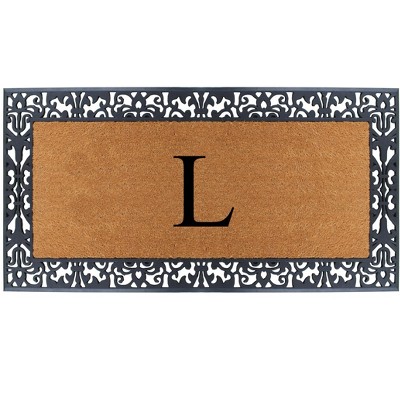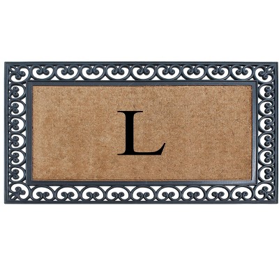A1HC Natural Rubber Coir Outdoor Doormat 24x48 Monogrammed Anti-Shed Treated Durable Front Door Mat Letter L