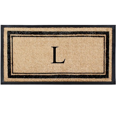 A1HC Non Slip Rubber and Natural Coir Doormat for Outdoor Entrance Front Door Mat 30x48 Monogrammed L