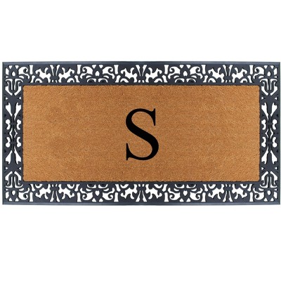 A1HC Non Slip Rubber and Natural Coir Doormat for Outdoor Entrance Front Door Mat 30x48 Monogrammed S