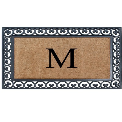 A1HC Rubber & Coir Flocked Doormat 30"x48", Anti-Shed, Heavy Duty for Front Door Monogrammed Mat Letter M