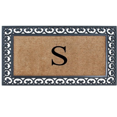 A1HC Rubber & Coir Flocked Doormat 30"x48", Anti-Shed, Heavy Duty for Front Door Monogrammed Mat Letter S