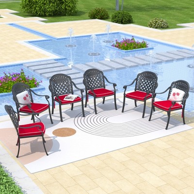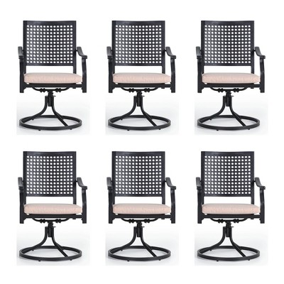 Cast Aluminum Patio Armchair With Black Frame And Cushions In Beige Colors