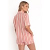 Short sleeves make this top ideal for warmer weather, allowing you to stay cool and comfortable while looking fabulous. One of the standout features is the front tie closure and pink stripe print.