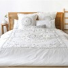 - LEVTEX HARLESON Comforter SET: The Harleson comforter collection is an intricate jacquard in cream tufted chenille and frayed cotton on a white cotton ground. The set consists of a comforter and matching pillow cases.