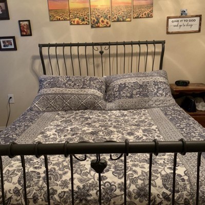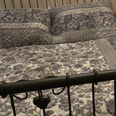 This Stone Cottage Abbey quilt has wide bands of intricately detailed paisley and Jacobean floral patterns. The front of the quilt is a classic palette of slate blue with grays and white, the reverse is the diamond pattern taken from the front in the blue and gray color. The shams which are included in the set have rounded corners and a European closure making the set fully reversible. This quilt is 100% cotton, with a cotton (80%)/polyester (20%) filling is lightweight and easy to layer. The corners of the quilt are rounded to match the sham, both edges are finished with a fabric binding. We have reduced our packaging, eliminating all plastic. Your quilt set will arrive secured with a ribbon. The set includes 1 quilt and 2 shams (1 sham for the twin set). Machine washable, for easy care