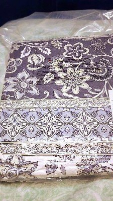 Awesome slightly oversized quilt! So many times the quilts are just big enough but I have a deep pillowtop mattress and I wanted the quilt to cover with just a bit extra and this quilt fits the bill!! The color is slightly different that the photo -- it almost appears in the picture that there might be some light green or lavender but it is really dark grey, light grey and white. I'm SO happy I bought this quilt set!!!