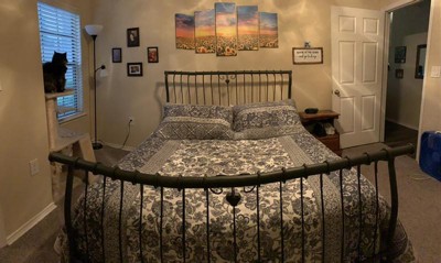 I love this quilt! It’s more grey than blue. It looks beautiful on my bed