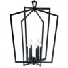 The open cage style of Abbotswell 6 light chandelier makes maximum impact with minimal lines. Intersecting pentagons create a look that works in a variety of decors: updated traditional, transitional or modern farmhouse. Chain Length: 72.00 Material: Steel, Finish Color: Black, Width: 24.75", Height: 32.25", Chain Length: 72", Lamping Type: Incandescent, Number Of Bulbs: 6, Wattage: 60 Watts, Dimmable: No, Moisture Rating: Dry Rated