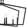 The open cage style of Abbotswell linear chandelier makes maximum impact with minimal lines. Intersecting pentagons in a rich Matte Black finish create a look that works in a variety of decors: updated traditional, transitional or modern farmhouse. Chain Length: 72.00 Material: Steel, Finish Color: Black, Width: 12.75", Height: 20.25", Length: 42", Chain Length: 72", Lamping Type: Incandescent, Number Of Bulbs: 8, Wattage: 60 Watts, Dimmable: No, Moisture Rating: Dry Rated