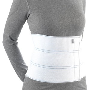 The three panel, nine inch high design is best suited for the petite to average female figure. It helps with recovery from abdominal muscle strain and enhances compliance from open abdominal surgical procedures. The soft plush liner is comfortable against the skin and the binder won't restrict breathing or muscle redevelopment. OTC has used a hinged stitch that allows for unmatched flexibility and conformity.