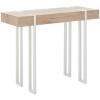 Breathe life into any corner with the sleek and charming style of our Aberton console table. Its rich and substantial tabletop is beautifully balanced with a slender rectangular frame. Achieving a strong visual balance, the console table anchors any space with its playful charm. It is adorned in a wood veneer showcasing rich organic grains and elegantly harmonizing with the white metallic base. Our console table delivers eye-catching elegance to serve as the perfect backdrop for your beloved decor items and collectibles.