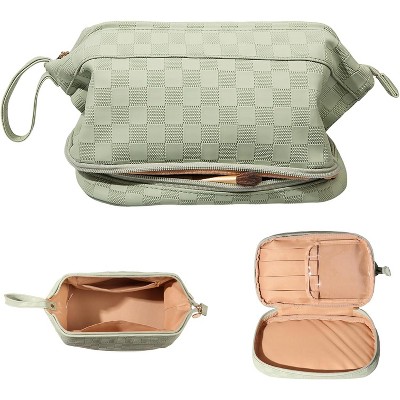 Abiding Large Capacity Makeup Bag Ladies Cosmetic Bag Travel Bag with Compartments Handle Checkerboard-Green 5.5"x7"x9.4"