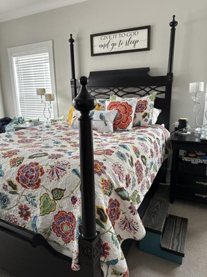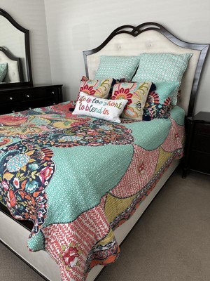 I love everything about this..the colors are vibrant and the quality is great. It’s larger so you don’t have to pull it over more on the side that shows while the hidden side is short. This isn’t the first Levtex quilt I’ve bought. In fact, I will add the pic of that quilt too.