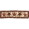 Create a warm and welcoming table for friends and family to gather round with primitive colors and quilted details. The Abilene Star Quilted Runner includes one table runner made from 100 percent cotton. Warm and rich tones of burgundy, tan and dark brown are joined in array of classic checks and tartan plaid prints in a rustic patchwork with a soft feel. At the center of the design is a series of bold, 5-point stars for an elegant, Americana look. The classic country table runners reverse to a burgundy and tan tartan plaid with soft country black striping. Complete your tabletop decor with other pieces from the Abilene Star Collection by VHC for a coordinated modern primitive look.