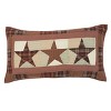 Rich and beautiful tan, burgundy, and dark brown colors add warm traditional colors to your classic country home. The Abilene Star Sham includes one sham pillow cover with a quilted design featuring a bold plaid border and patchwork stars for primitive country style. This cotton pillow sham includes piped edging and reverses to a solid black and burgundy plaid. The decorative pillow case includes button-style closure to hold your fill pillow (not included) in securely. Machine washable and iron safe.