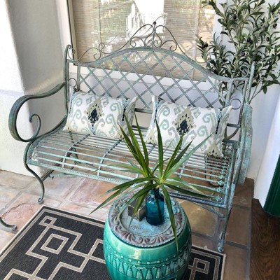 Loving this unique bench. You don't need a Victorian or traditional house despite its intricate details. My entry porch is now interesting and inviting, and it didn't cost a small fortune. It's now my favorite place to sit a spell, and it's right outside my front door. I added the backless Adina bench in the same patina green, some small pillows, outdoor rug, and a garden stool as a table. The "antique dark green" color choice is like a true copper patina; looks great w/ warm neutrals, aqua/green, grey/black. Bench appears delicate but sturdier than it looks! Wt limit is 330 lbs. Easy to assemble. What's not to love? Enjoy making your new oasis
