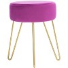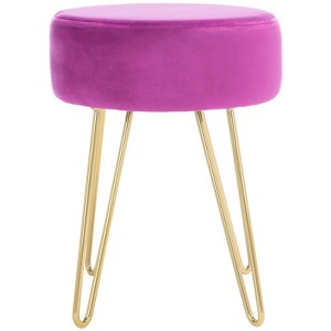 The rich boysenberry velvet offers a splash of color while the sleek gold frame adds an element of glamour. Whether used as a footrest or as an extra seating option, the Abrea round ottoman brings a touch of elegance to your home.