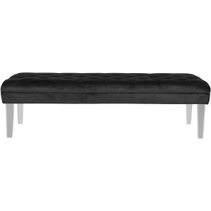 Introducing the Ambrosia bench in sleek black, a stylish addition to any space. Crafted with care from wood, fabric, and foam, this bench complements any decor with its understated elegance. Its black color adds a touch of sophistication, making it perfect for both modern and classic settings. The materials are chosen for comfort and durability, ensuring a pleasant seating experience. Whether placed in an entryway, at the foot of your bed, or in a living room, the Ambrosia bench offers both style and function. Redefine your space with a piece that blends seamlessly with your lifestyle, offering a cozy spot to rest or a chic accent to enhance your home. Bring home the timeless charm of the Ambrosia bench today.
