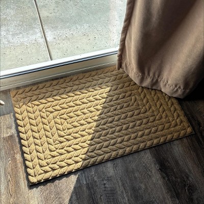 A: The doormat is rectangular in shape, measuring 36 inches by 24 inches.