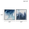 The Madison Park Blue Lagoon Abstract 2-piece Framed Canvas Wall Art Set by Artist Blakely Bering offers a beautiful and refreshing update to your home decor. Showcasing abstract images in cool shades of blue and white, this canvas wall art set features silver frame detailing that complements and accentuates the contrasting hues and adds a nice luster. A gel coating creates a glossy sheen that protects the colors from fading, while the 3mm MDF backing provides additional structure. Each piece features 2 D-rings on the reverse to easily hang this set together or separately. Comes as a 2 piece set, each piece measuring 25.5x25.5". Invigorate your home by incorporating this framed canvas two piece set into your living room or bedroom.