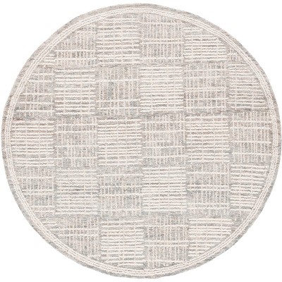 Elevate your space with the understated elegance of our 6' X 6' Round Grey/Ivory area rug. Expertly hand-tufted in India from sumptuous polyester with a plush 1/2" pile height, this rug promises both comfort and exquisite craftsmanship. The contemporary style seamlessly blends with any modern decor, while the subtle grid pattern adds a touch of sophistication to your floors. Its round shape offers a graceful accent in any room, perfect for creating a serene and inviting atmosphere. Though not washable and without slip resistance, the quality and durability of this rug are unmatched. Embrace the luxurious touch and serene beauty it brings to your home.