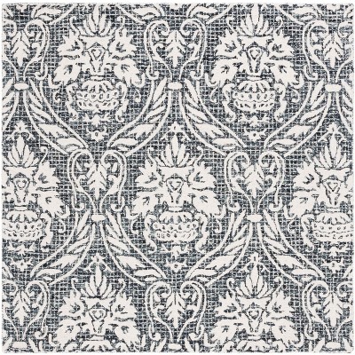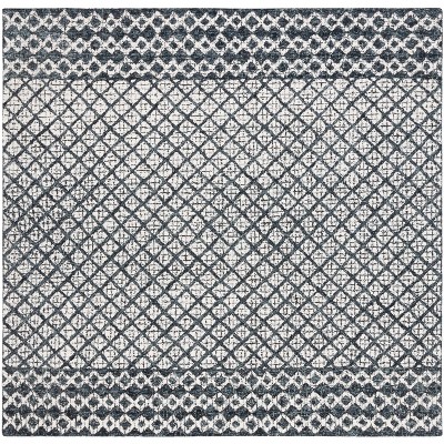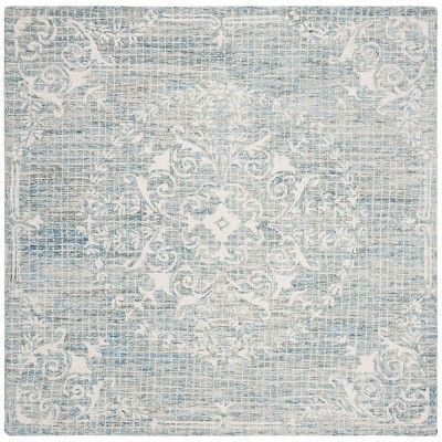 Elevate your space with this exquisite 6' x 6' hand-tufted area rug, designed with a luxurious blend of wool and cotton. Its plush 1/2" pile adds a layer of comfort underfoot. Crafted in India, this square rug boasts an intricate pattern, with symmetrical motifs in a harmonious dark blue and grey palette, offering both sophistication and durability. This rug's timeless style is not washable and lacks a slip-resistant backing, making it a statement piece that is as practical as it is stylish. Perfect for adding a touch of elegance to any room.
