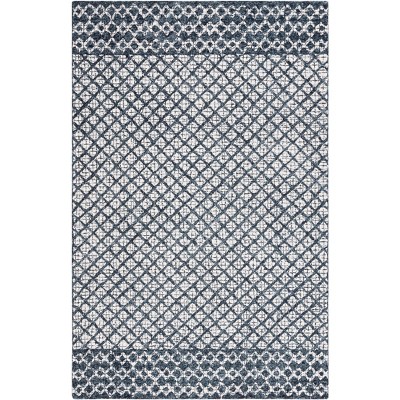 Elevate your space with the timeless elegance of our 5' X 8' Medium Rectangle Area Rug. Expertly hand-tufted in India, this piece boasts a luxurious 1/2" pile height crafted from the finest wool and cotton blend. The classic color combination of ivory and navy creates a sophisticated contrast that's sure to accentuate any room. The rug showcases a beautiful pattern, featuring intricate details that exude a sense of traditional charm and character. While this exquisite rug is not washable, its heirloom-quality construction ensures lasting beauty and grace in your home. Add a touch of grandeur to your decor with this non-slip-resistant masterpiece, designed to be a statement of style and comfort.