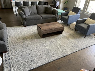 The rug is pretty but much lighter in person than in the picture. There was much more ivory color than blue. We knew it wouldn’t stay clean with kids and a dog.