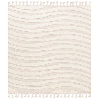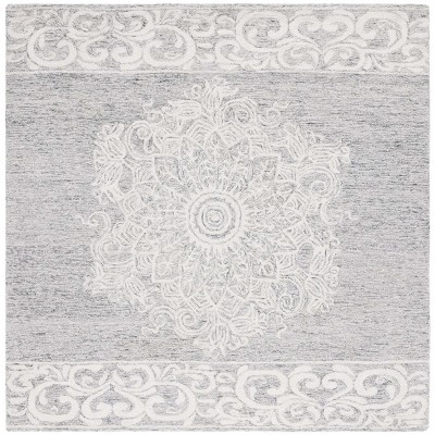 Introducing our luxurious square area rug, perfectly sized at 6 feet by 6 feet to create a harmonious look in any room. The elegant ivory and grey hues bring a sophisticated balance to this plush accent piece. Standing at a comfortable height of 3/8 inch, the rug boasts a hand-tufted construction that promises both durability and intricate detail.
