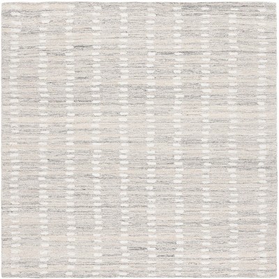 Elevate your living space with a touch of sophistication and modern appeal with our hand-tufted area rug, a perfect fusion of luxury and craftsmanship. Boasting a generous size of 6' x 6' with a comfortable pile height of 3/8", this square rug features a striking ivory and silver color palette that impeccably blends with a range of interior styles.