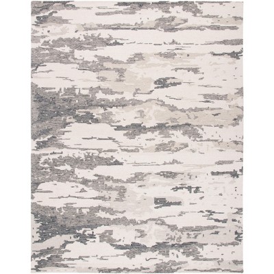 Elevate your living space with this hand-tufted wool area rug, sized 9' X 12' and boasting a height of 3/8". Expertly made in India, its large rectangular silhouette is enveloped in a soothing grey and ivory color palette. The rug's abstract pattern gives it a contemporary look that is versatile yet striking. Its wool construction ensures durability and a soft feel underfoot. Please note, this elegant piece is not washable and lacks slip resistance, but its beauty and quality craftmanship are sure to make it a standout element in any room. Add a touch of sophistication to your decor with this timeless rug.