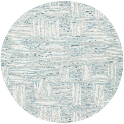 Elevate your living space with the exquisite charm of our modern round area rug in a serene palette of blue and ivory. Crafted with meticulous attention to detail, this 6' X 6' rug boasts a plush height of 3/8" and the timeless elegance of hand-tufted craftsmanship. Made from a blend of 80% Wool, 10% Chenille, and 10% Cotton, it promises a luxuriously soft underfoot and enduring quality.