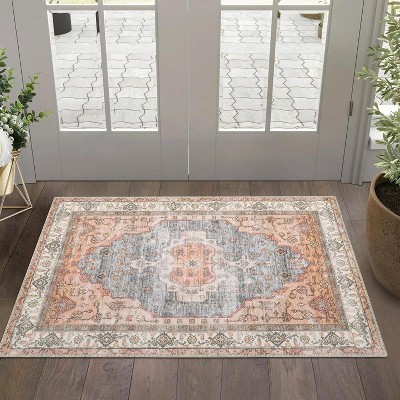 Abstract Braided Printed Area Rug, Indoor Low Pile Washable Area Rugs, Non-Slip Stain Resistant Accent Rug for Home Decor