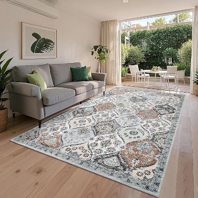 Abstract Geometric Non-Slip Runner Rug - Machine Washable, Rubberback for Hallway, Bedroom & Living Room 10x13 Pink