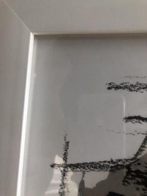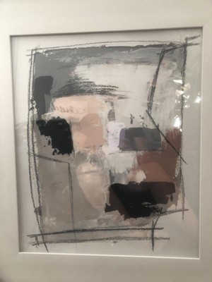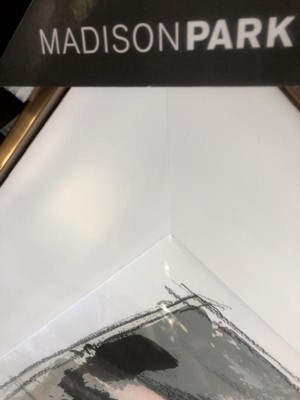 [This review was collected as part of a promotion.] Madison Park - Abstract Reveal Framed Glass and Gallery Matted Wall Art arrived safely packaged in a large box with styrofoam surrounding it. There was a small divot out of the side of the outer frame. The glass is in the center covering the abstract piece only. The white plastic inner frame is exposed. This piece has a lovely neutral color scheme that would fit in many different situations of color and use. The pre attached hangers make installation a breeze! Nice addition!