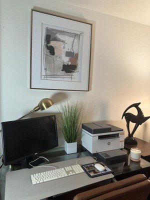 [This review was collected as part of a promotion.] This is a beautiful painting and it works so well in my home office. I love the framing of the picture. It’s very professional with the white interior border, gold outer frame and glass covering. I’m also a big fan of the colors used as they compliment well with other items in the room. The art itself is striking and your eyes are immediately drawn to it upon entering the room. I’m very pleased with my selection.