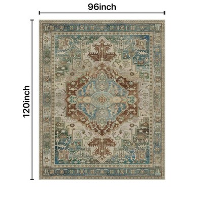 ABYNOW Vintage Medallion Beige Floral Soft Low-Pile Washable Area Rug