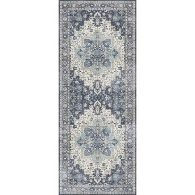 This vintage-inspired boho area rug features a printed pattern with intricate details that handcrafting can't replicate. The distressed medallion design adds charm to various rooms, including living rooms, bedrooms, and dining areas. Its ultra-thin profile ensures safe placement under furniture and in entryways, preventing tripping hazards and allowing robotic vacuums to clean effortlessly. The rug is machine washable, maintaining seamlessly with different lifestyles. Simply machine wash on a gentle cycle with cold water and air dry, but do not bleach. For routine care, vacuum or wipe down. This rug is ideal for high-traffic areas and homes with children and pets, resisting dirt accumulation. Note: Temporary creases can be removed by reversing the rug's fold and applying pressure.