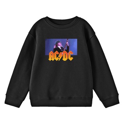 AC/DC Angus Young Playing Guitar Youth Black Graphic Youth Crew Neck Long Sleeve Tee
