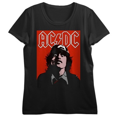 Rock out in classic style with this women's black AC/DC crew neck short sleeve t-shirt. Featuring the band's iconic red logo on the front, this shirt delivers bold, electrifying style for any fan. Made with soft cotton for breathable comfort, it's perfect for everyday looks or concert nights. Machine wash this graphic tee on cold with like colors and tumble dry on low heat for effortless care.