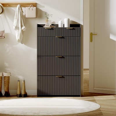 Tall Free-Standing Shoe Cabinet for Entryway, 2 Flip Drawers, Hidden Storage, Foyer & Hallway Organizer, Natural, 31.6" L x 9.6" W x 40" H