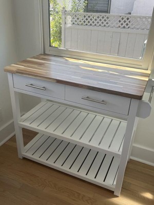 Acacia Wood Top Rolling Kitchen Cart Island Table with Drawers, 38.4" W x 18.5" D, White