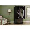 This flexible, versatile wardrobe-armoire features multiple storage spaces to meet your every need. The left-hand door conceals a series of shelves for storing sweaters, while the metal rod behind the right-hand door can be used to hang longer items of clothing. And the two large drawers at the bottom make the whole thing thoroughly practical! It even has two hooks on the back of the right-hand door - perfect for hanging scarves, ties and other types of neckwear. The framed doors, streamlined drawers and elegant nickel-finish handles make this piece part of the transitional style, so it can be adapted to any room, whatever the décor.